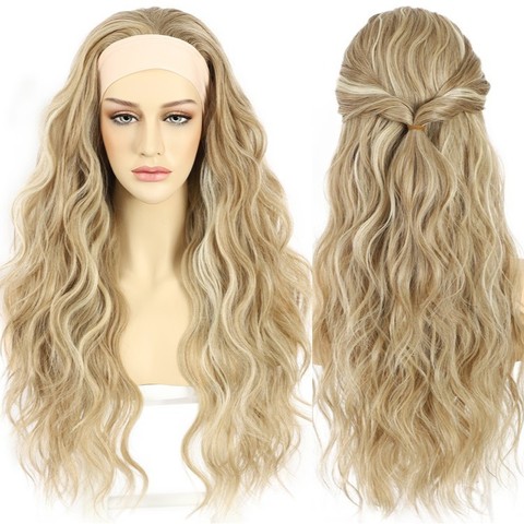 BeautyTown 26 인치 긴 하이라이트 금발 믹스 Balayage 스타일 내열성 합성 머리띠 가발 화이트 여성 머리띠 가발