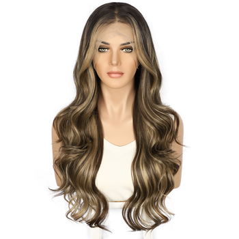 13x4 Ombre Blonde Brun Perruques Synthétiques En Gros Futura Fibre Cheveux pour Femmes Résistant À La Chaleur Doux Aspect Naturel Usage Quotidien