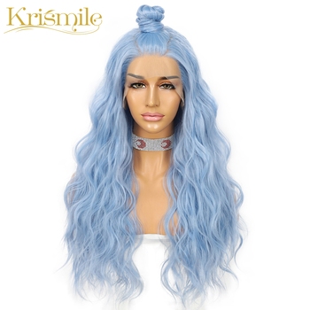 Long Water Wave Synthetic Lace Front Wigs Blue Color Hair for Women Party Cosplay Drag Queen Daily Heat Resistant Fiber