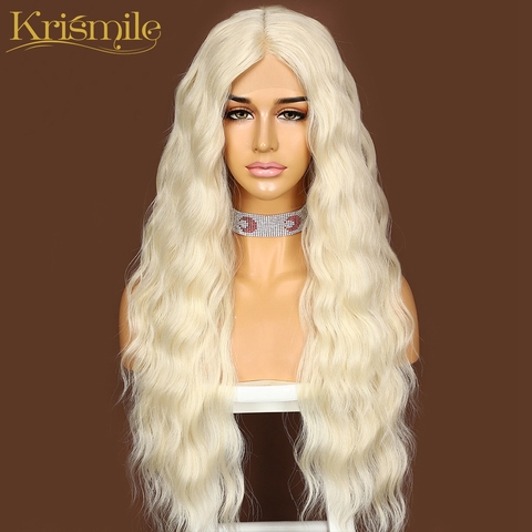 Peruca de renda sintética krismile t parte 613, peruca frontal loira água, parte intermediária para mulheres, festa de alta temperatura, cosplay diário cabelo